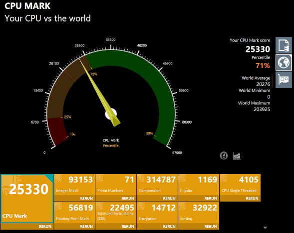 スコアは25330となり、かなり高い値になりました。現在販売されているビジネスノートPCや一般向けノートパソコンの中でも上位に入る性能です。問題なく使うことができるでしょう。