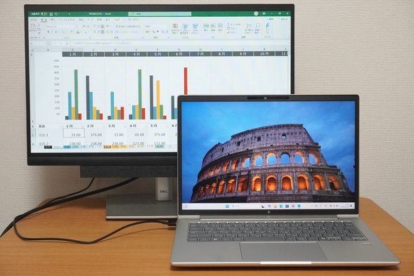 モニターやプロジェクターにつないで、プレゼンを行うことも問題ありません。HDMIポート、またはUSB Type-Cポートがディスプレイ出力に対応しています。