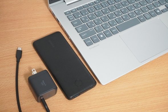 ちなみに、パソコンのUSB Type-CポートはPower Deliveryに対応しているので、Power Delivery対応のモバイルバッテリーや充電器を使うこともできます。もし、ACアダプターを持ち歩きたくないなという場合には、これらの製品で代用もできます。