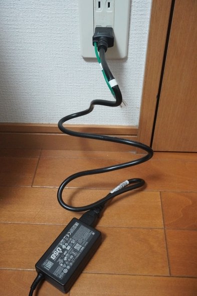 ACアダプター+ケーブルの組み合わせは、下の写真のような使い方になります。よく見る使い方なので、特に迷わないと思います。