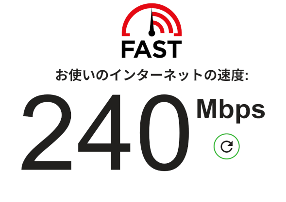 今回、LANケーブルを接続した時と、Wi-Fi 5 (11ac)でインターネットに接続した時の通信速度を計測してみました。両者ともに240Mbpsという速度で通信できました。