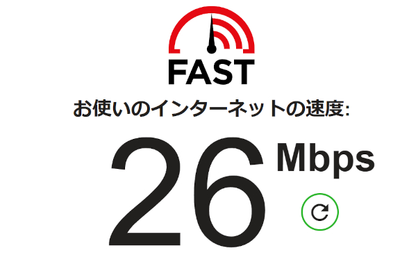 LTEでの通信になりますが、昼間の計測で約26Mbpsという速度でした。光回線を使った速度に比べると見劣りするのですが、この速度でもサクサク快適に動いて軽快に使うことができました。