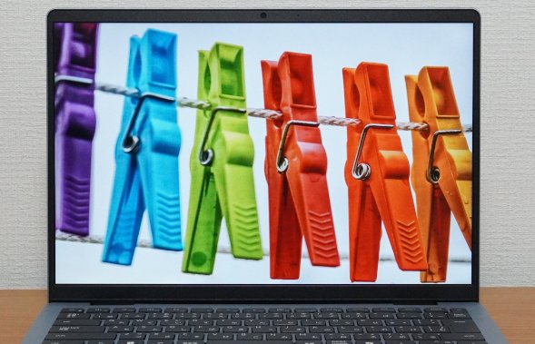 sRGBカバー率は62.8%となっています。画像や動画編集などのクリエイティブな用途には少し物足りないかもしれませんが、WordやExcelなどを使って書類作成をしたり、ネットサーフィンや動画鑑賞を行ったりというような一般的な使い方には全く問題なく使うことができます。