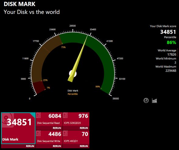 続いてストレージです。SSDを搭載していて、非常に高いスコアが出ました。とても高速に動作します。