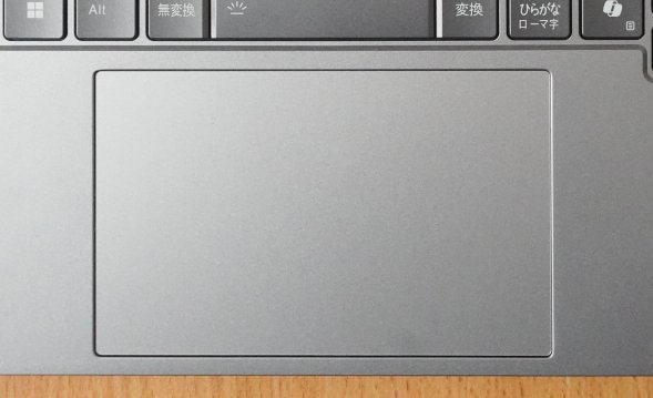 キーボードは下の写真のようになっています。中央下部にタッチパッドがあり、電源ボタンが右上に配置されています。
