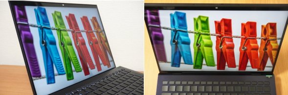 光沢あり(グレア)液晶は、画面の映り込みはありますが、とても鮮やかな表示が可能です。