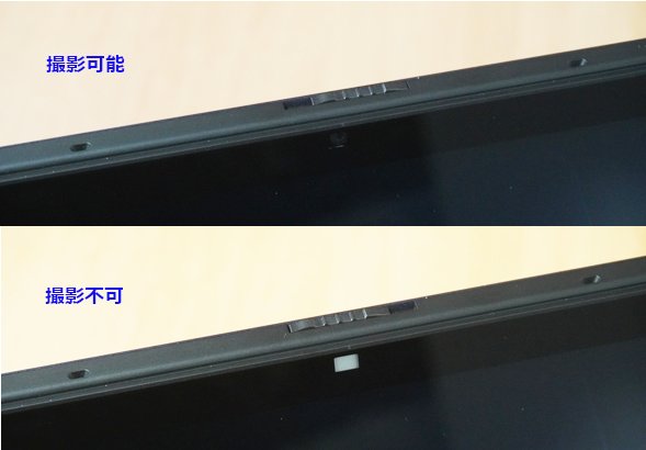 カメラのすぐ上にあるレバーを手で動かすことで、カメラレンズにふたをすることができます(プライバシーシャッター)。テレワークやリモート会議での使用時など、カメラに映ると困るような場合に使用すると良いです。