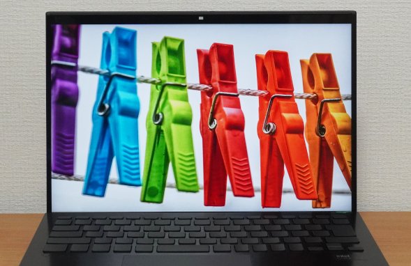 発色も良く、sRGBカバー率は98.6%となっていました。色域がとても広く、画像や動画などの作品を制作するような作業にもしっかり使うことができます。
