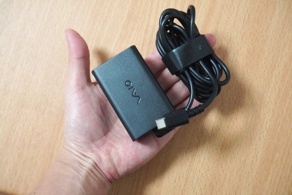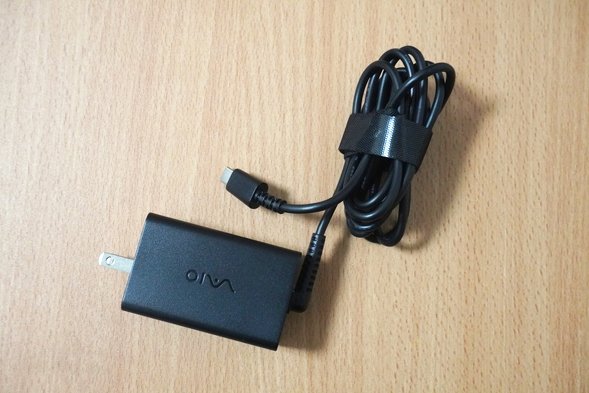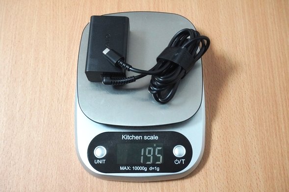 ちなみに、ACアダプターはコンパクトで軽量です。ケーブルを含めても手のひらの半分くらいで重さはたったの195gでした。前モデルを使ったことがありますが、そのモデルのACアダプターよりもさらに35gも軽量化されました。しかも、前モデルではACアダプターとケーブルが分離するタイプだったのが、最新モデルでは一体化されていて取り扱いやすくなっています。