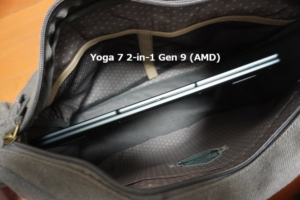 このように、レノボYoga 7 2-in-1 Gen 9 14型 (AMD)は、A4サイズで持ち運びにも便利な軽いノートパソコンなので、自宅で使うだけでなく外出先にも簡単に持ち出すことができます。